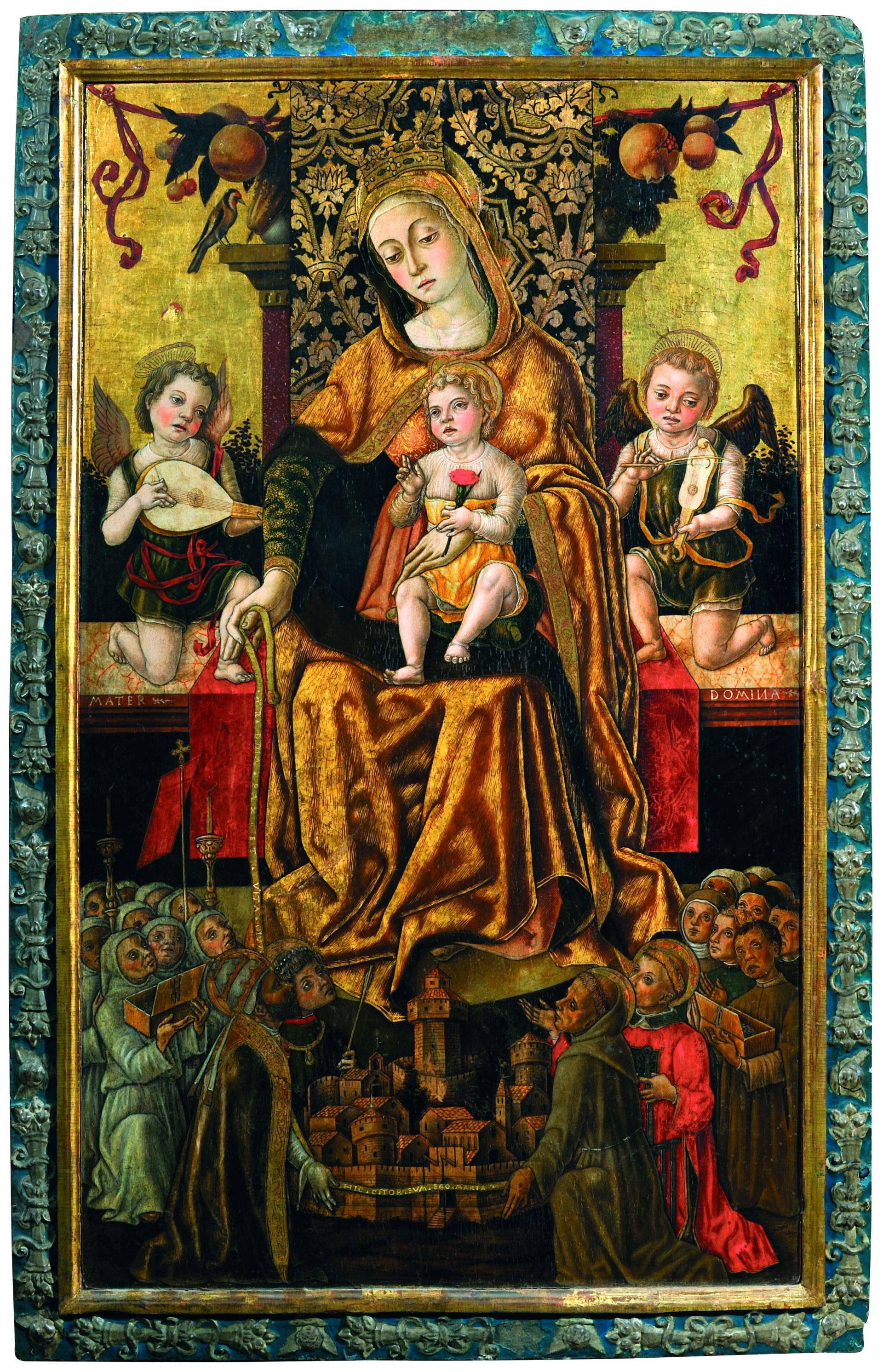The Franciscans of the Osservanza order, through their sermons on commerce, usuryand charity, promote a type of economy, that is closely related to the business market andto the reliability of the merchant, who must be able to make money circulate fruitfully and then to invest part of his benefits on good deeds or public works, to have salvation.These investments are often used in the commission of images, often exposed in Franciscan churches, or in support of the Mont of Piety, a bank, developed and defended by the Osservanti, that, often in rivalry with the Jewish banks, lent money against a security.The promotion and legitimization of this institution, that since its creation caused several disputes, has entrusted not only to the sermons, but also to the works of art. In Le Marche region, in the late fifteenth Century, were produced for this purpose at least three images.With their similar iconography, the Figura della vita eterna, conceived by the preacher Marco da Montegallo, the Madonna del Monte of Caldarola, painted by Lorenzo d’Alessandro,and the homologous Madonna del Monte of Massa Fermana, painted by Vittore Crivelli,show how a modern meaning can still be expressed effectively with archaic constructs, in the geographic “center” of a spiritual and economic reform rich in consequences.