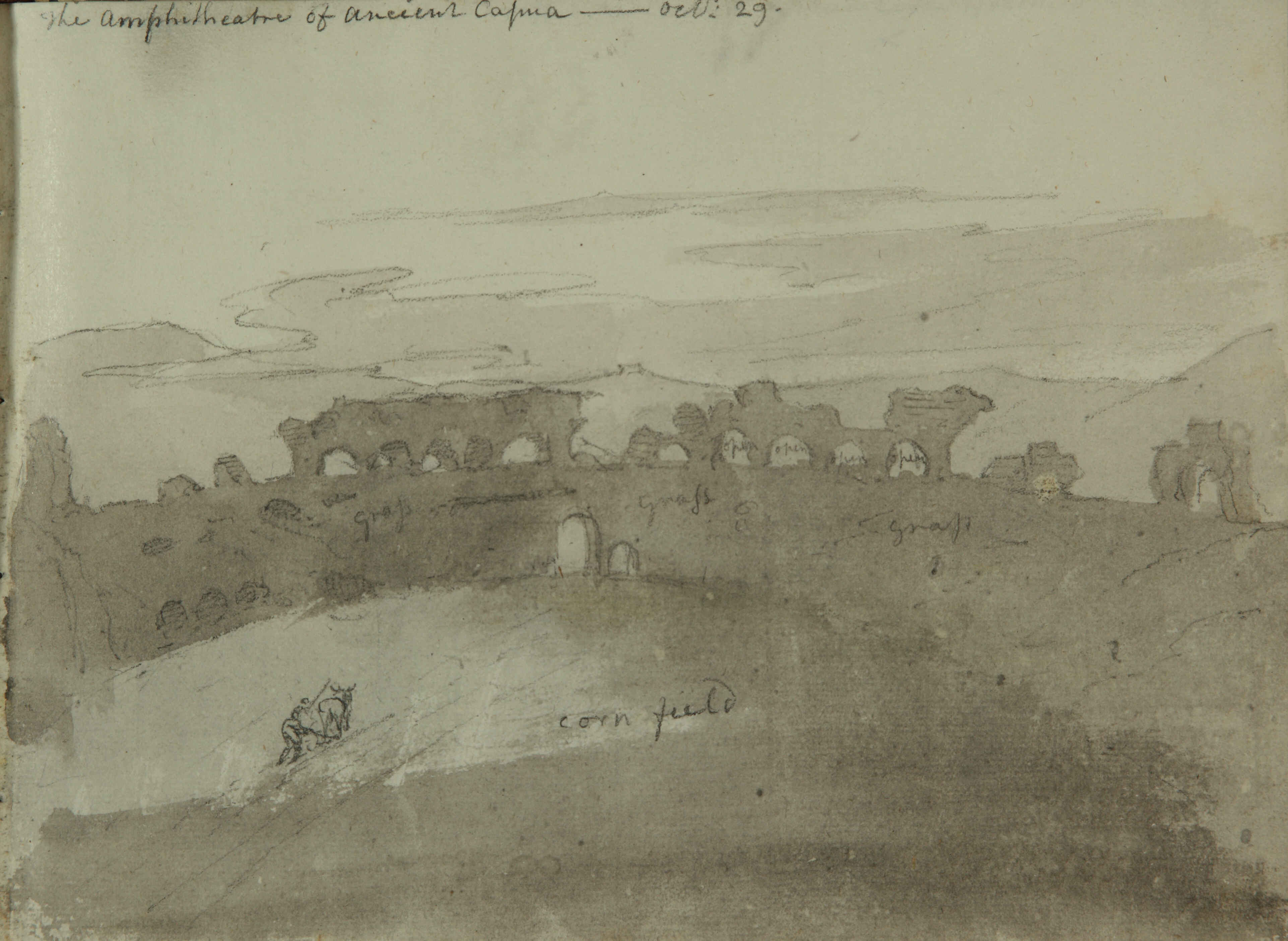 The interest of travellers and artists regarding the amphitheatre of the ancient Capua had already been documented since the sixteenth century. Nonetheless, “travelling painters” of the Grand Tour, often accompanying wealthy patrons from different countries, were the ones who first made the most important monuments of the Altera Roma widely known. Indeed, they rendered the ancient amphitheatre one of the topoi of the visual and literary repertoire of the journey from Rome to Naples. The aim of this article is to analyse representations of the amphitheatre comprising, paintings, sketches and engravings housed in museums, libraries and private collections. Said representations bear witness to visits made by numerous artists from throughout Europe to the ancient Capua during the second half of the eighteenth century and the first decades of the nineteenth century. These travellers were especially inspired by these ruins, which evoked the lure of one of the wealthiest, most powerful cities in antiquity. These works, often painted or drawn d’après nature, offer us, through various interpretations, effective images of how the monument appeared to travellers. They also document its state of conservation and the first protective measures implemented by the authorities of that time.