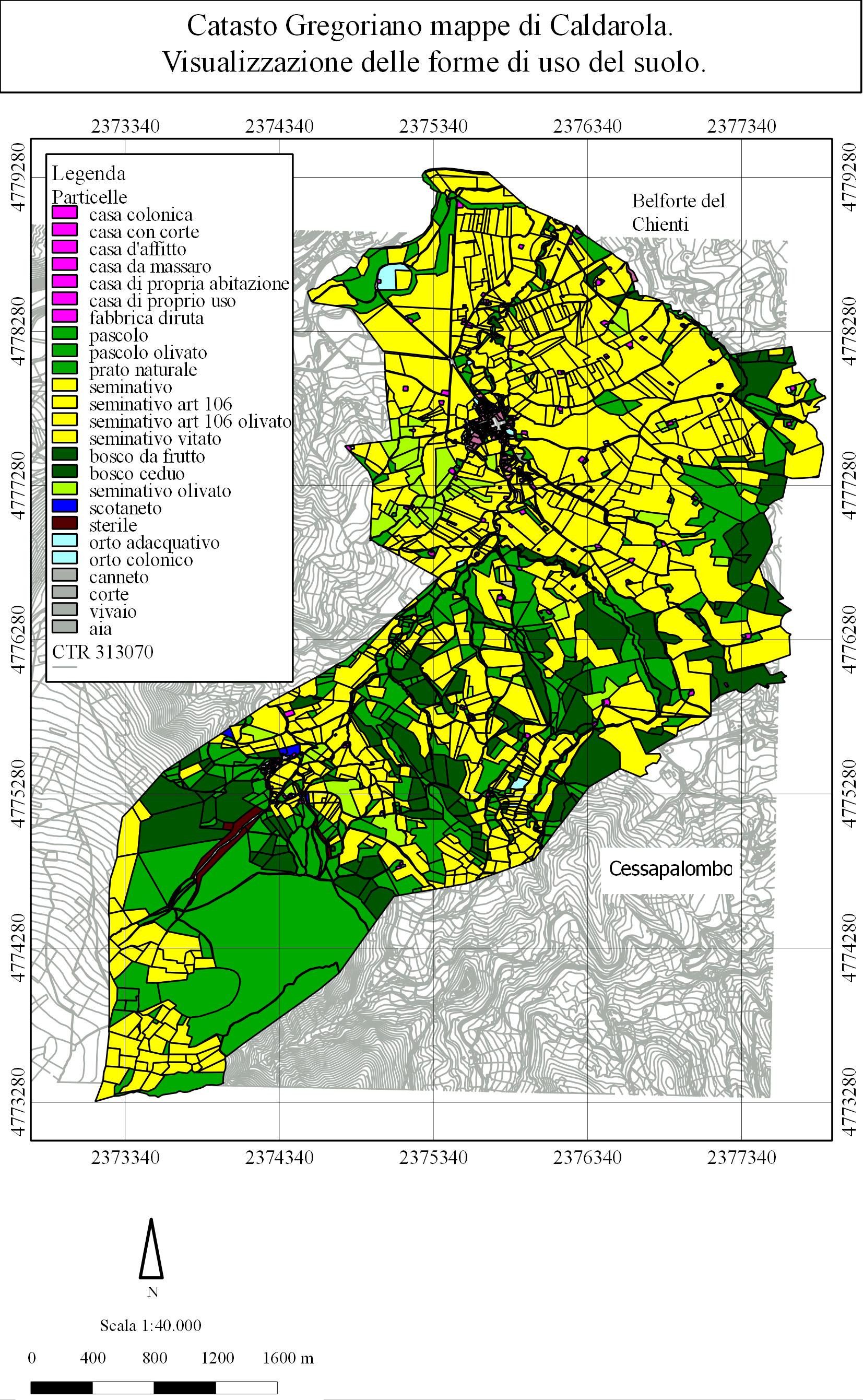 Questo contributo riassume le attività di un progetto finalizzato alla digitalizzazione di mappe del Catasto Gregoriano (XIX secolo) riferibili al piccolo centro di Caldarola, nelle Marche. Il lavoro fa parte del più ampio progetto R.I.M.E.M. L'utilizzo della tecnologia G.I.S. consente l'implementazione delle vecchie mappe in un layer tematico destinato ad illustrare la mappa dell'uso del suolo riferita al XIX secolo. Ciò consente un accurato confronto tra il paesaggio contemporaneo e quello di inizio Ottocento, incrementando in modo significativo la ricerca sull'evoluzione del paesaggio locale. La digitalizzazione delle mappe è stata realizzata implementando anche la toponomastica dell'epoca.