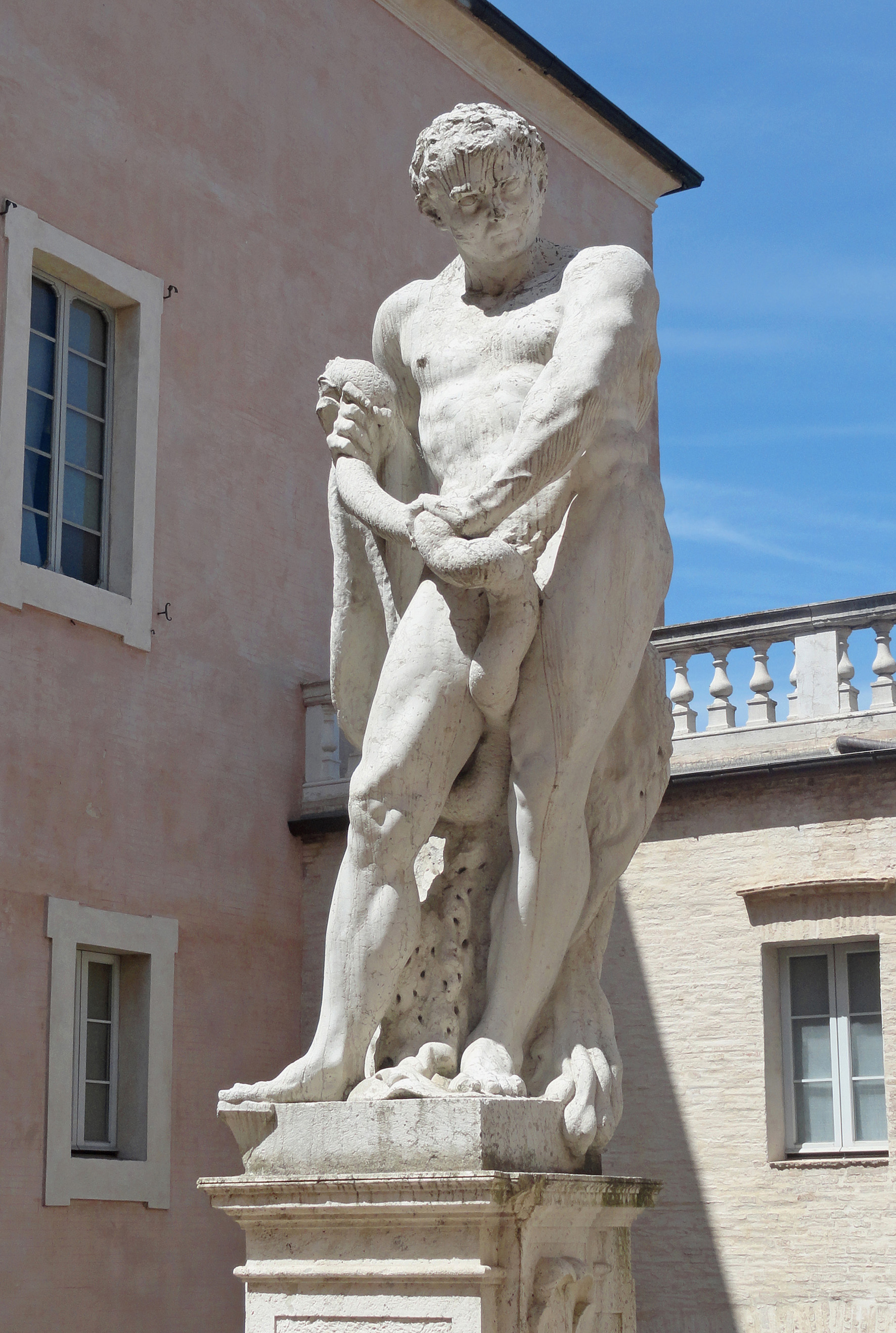- Fig. 6. Giovanni Baratta (?), Ercole uccide Ladone, Macerata, palazzo Buonaccorsi, cortile