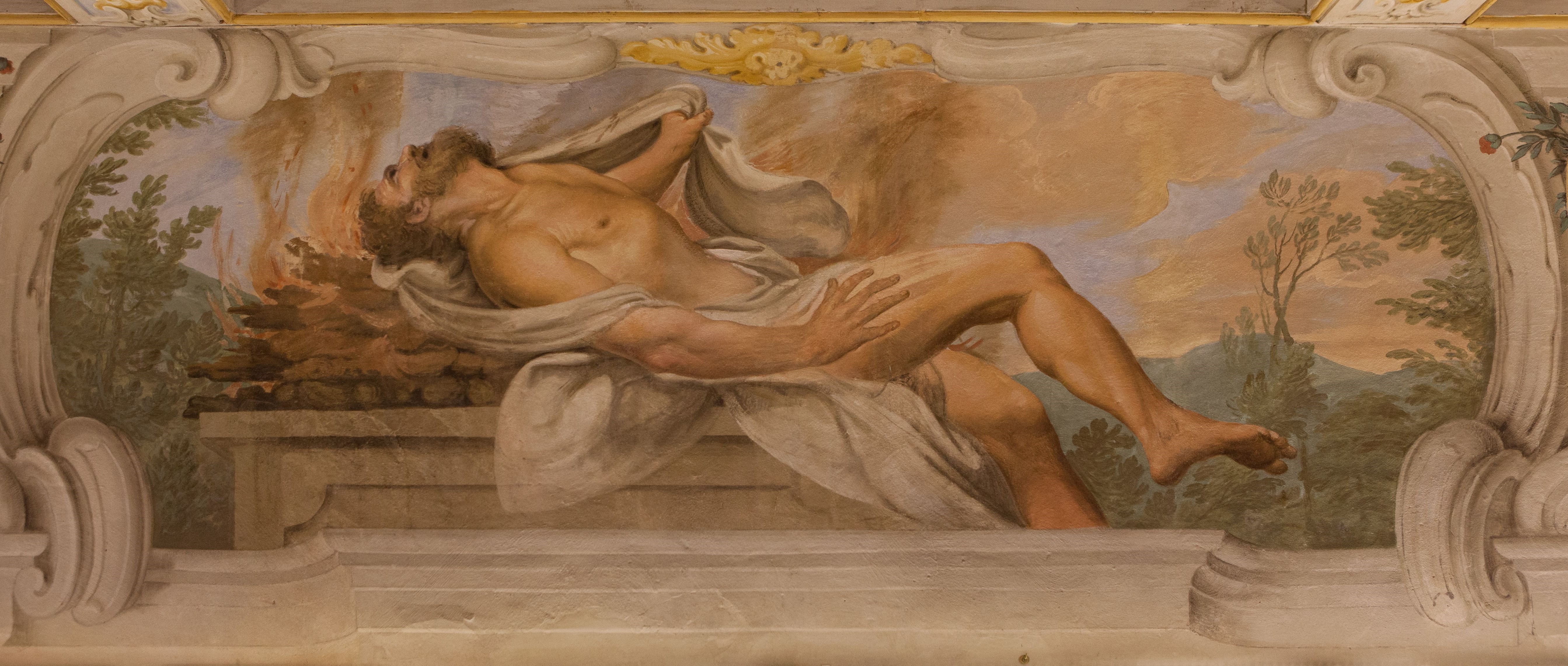 The purpose of this essay is to analyze the friezes of the rooms which, in the noble floor of Palazzo Buonaccorsi, precede the Gallery of the Aeneid, in order to propose a hypothesis on the original iconographic program of the same gallery. In particular, we intend to investigate the role played by two figures of the myth (Hercules and Bacchus), which seems to have a specific importance for the client. In thematic continuity with the friezes of the rooms of the palace, the set-up of the gallery, from the vault to the decorative apparatus of the walls, is actually centred on the celebration of Bacchus; this celebration is accomplished through the depiction of dancing maenads and satyrs, panthers and sacrificial goats, dressed up with ivy, vine-leaves and grapes, led by drunk putti. Although everything seems designed to host a series of canvases dedicated to the life of Bacchus, Aeneas eventually takes over, bringing to completion an encomiastic family program that is more explicitly addressed to Rome.