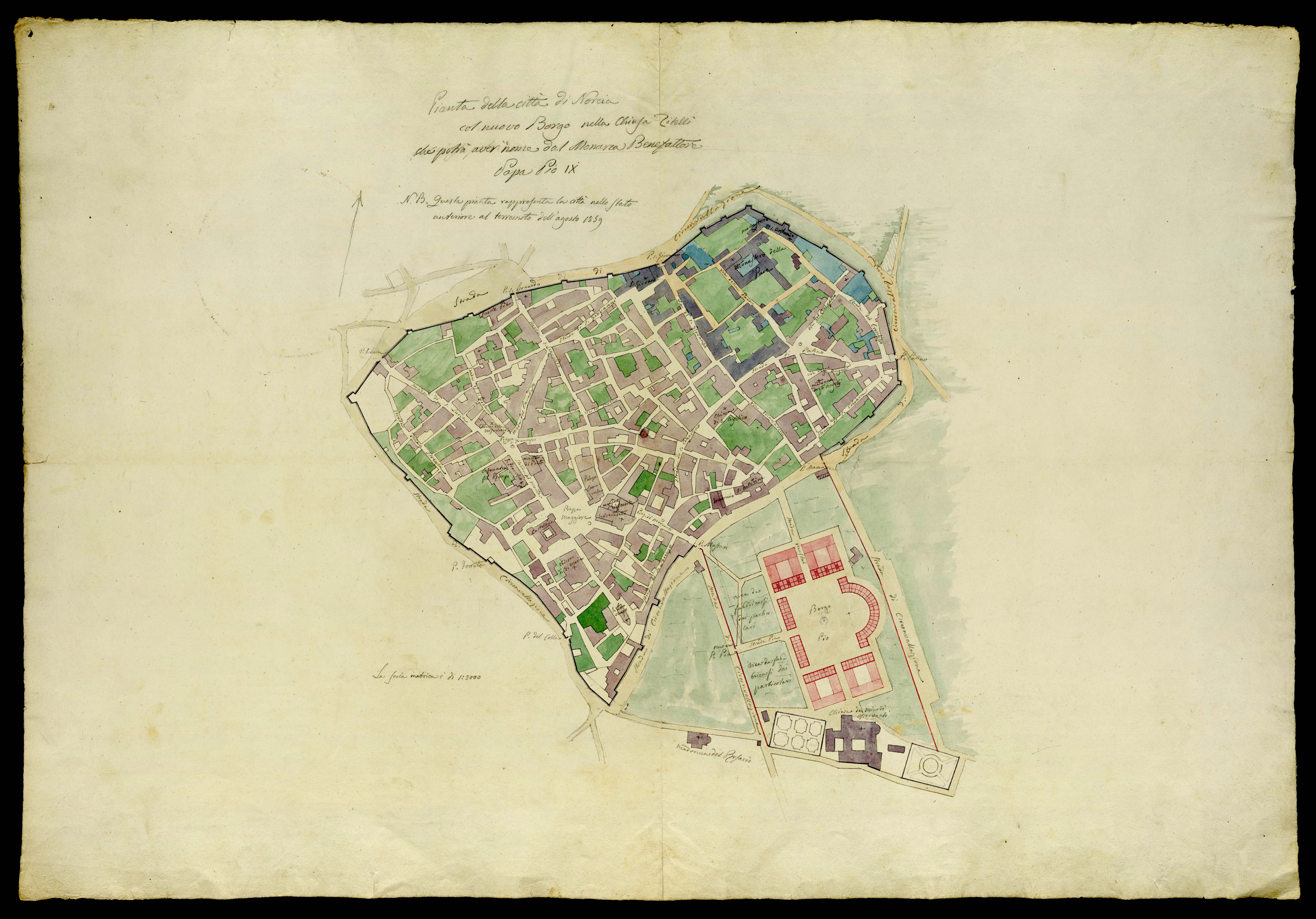 The seismic event that devasted Norcia in 2016 leads us to reconsider the history of this town and its urban and architectural transformations, through the phenomena of earthquakes. They are in fact a decisive factor in the development of this urban centre. In the past, major damage had been caused by earthquakes of 1328 and then of 1703, 1730 and 1859. The abundant documentation available for the 18th and 19th centuries provides us with an extraordinary quantity of data on many aspects of these catastrophic events, not only on material damage and consequent reconstructive actions, but also on the perception of those involved more or less directly in the disaster and the emotional impact that the earthquakes provoked. An overview reading of the sources allows us to follow through the building activities of this urban centre, focusing on its peculiar seismic character, which was re-moulded, redesigned and often modified on the basis of the seismic risk.