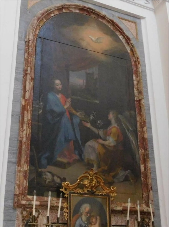 - Fig. 1. Pittore del XVII secolo, Annunciazione, da Federico Barocci, Montelupone, chiesa di Santa Chiara, riproduzione dell’autore