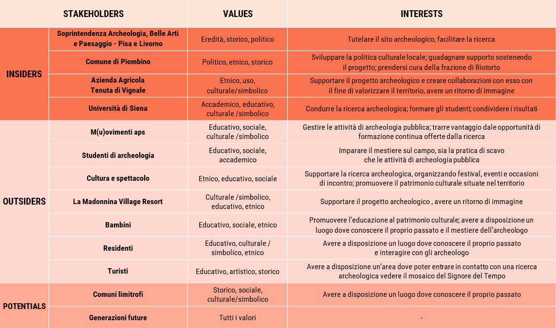 - Versione ridotta della value-based stakeholder analysis, validata dall’esperto e dalle interviste