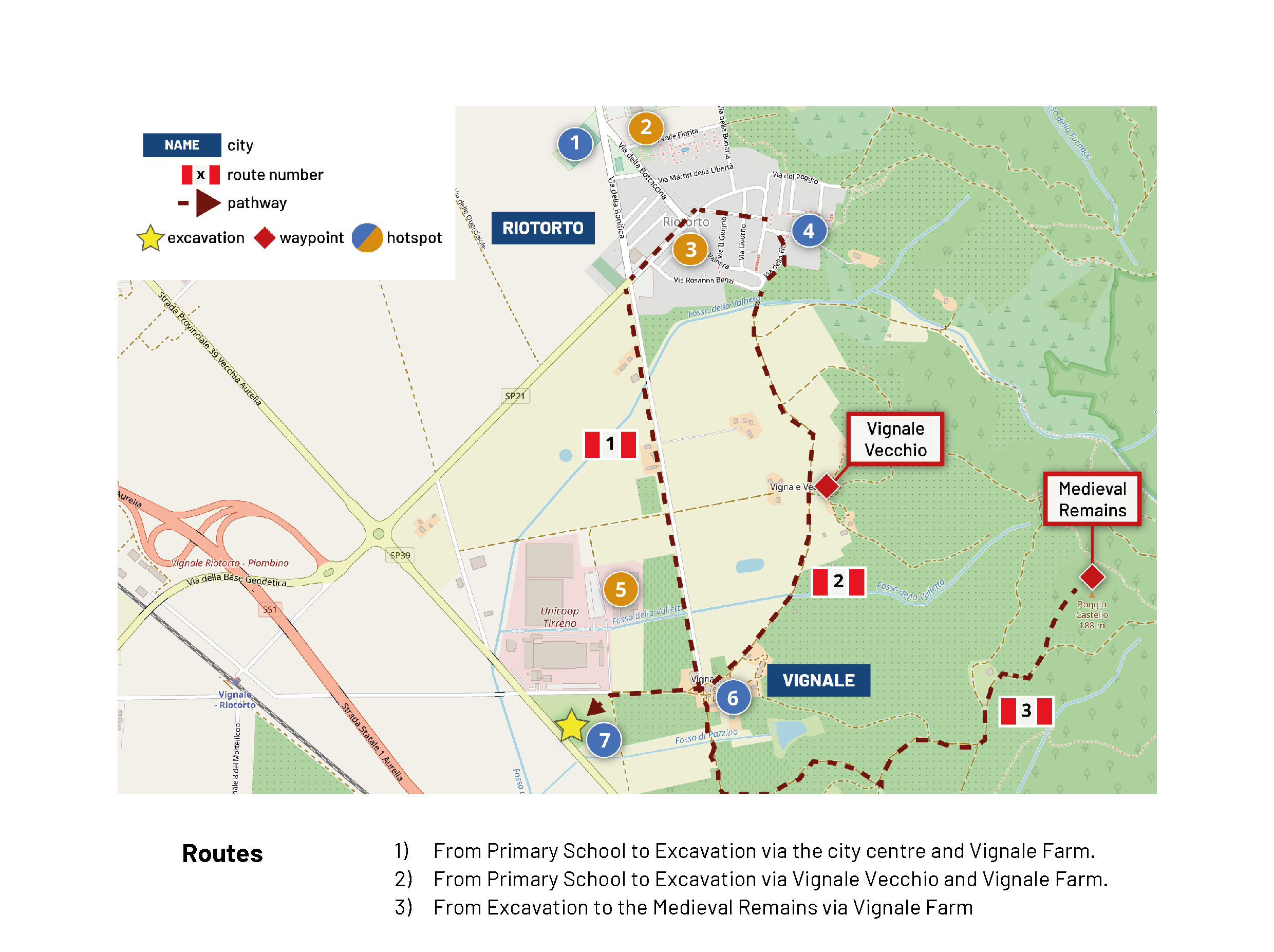 - Mappa di partecipazione: gli hotspot rappresentano i luoghi in cui avvengono le interazioni tra archeologi e stakeholders, quelli in blu sono stati riportati sia dall'esperto che dagli stakeholders, quelli in arancio solo dall’esperto