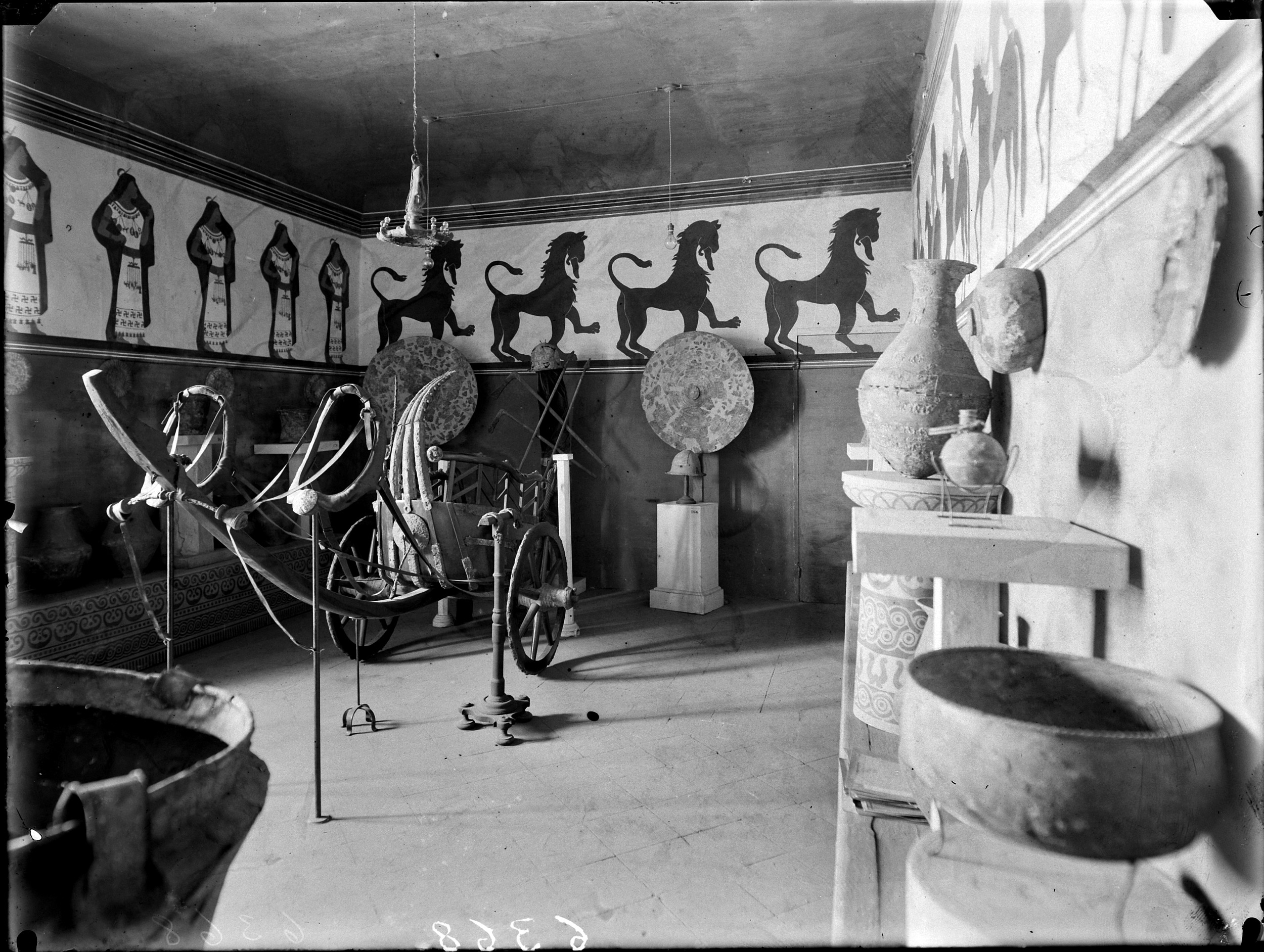 - Ancona, Museo Nazionale Archeologico, tomba del guerriero con ricostruzione del carro curata da Innocenzo Dall’Osso, fototipo 1914-1915