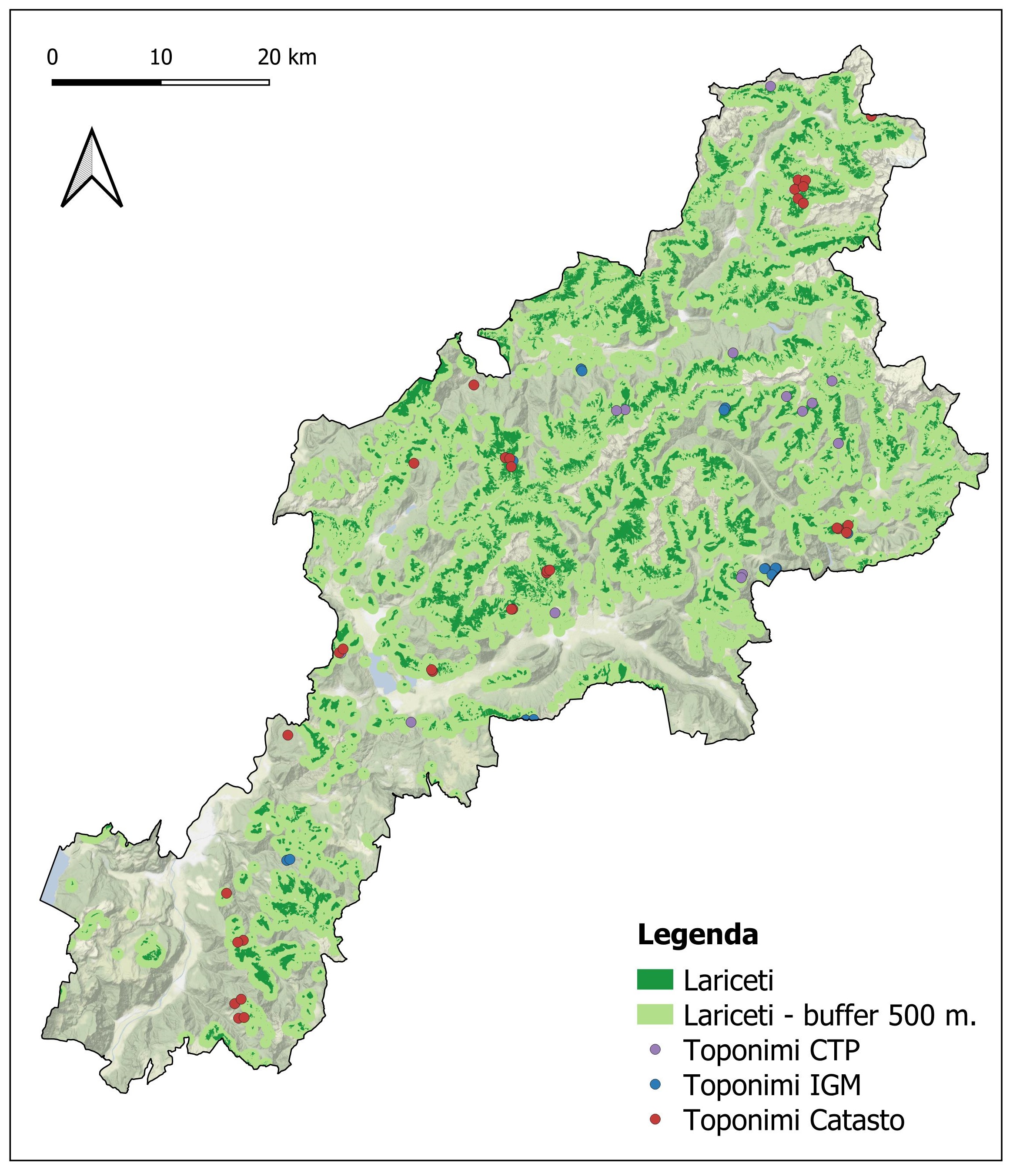 Il saggio presenta i risultati preliminari di un progetto attualmente in corso che mira a costruire un geodatabase di toponomastica storica relativa al territorio della Provincia di Trento. Utilizzando un approccio basato sull’utilizzo di software GIS sono state georeferenziate tre fonti cartografiche storiche a copertura provinciale: le carte militari austriache (1801-1805), il Catasto Austriaco (1853-1861) e le tavolette IGM (1910-1931). I toponimi registrati sono stati vettorializzati in forma di elemento puntuale geolocalizzato, classificati secondo campi preordinati e integrati con il dataset della toponomastica della attuale Carta Tecnica Provinciale (2017). Attualmente i dati raccolti coprono le valli del Trentino orientale, pari a circa metà del territorio provinciale. Il contributo analizza quantitativamente la distribuzione sincronica e diacronica dei dati raccolti; due foci tematici esplorano le potenzialità euristiche del corpus tramite ricerche dei fitotoponimi relativi alla specie Larix decidua e degli antrotoponimi collegati agli insediamenti per la pratica della monticazione. Il progetto ha come duplice obiettivo finale il recupero e la salvaguardia del patrimonio rappresentato dalla toponomastica locale scomparsa e il supporto a ricerche interdisciplinari su tematiche di interesse territoriale.