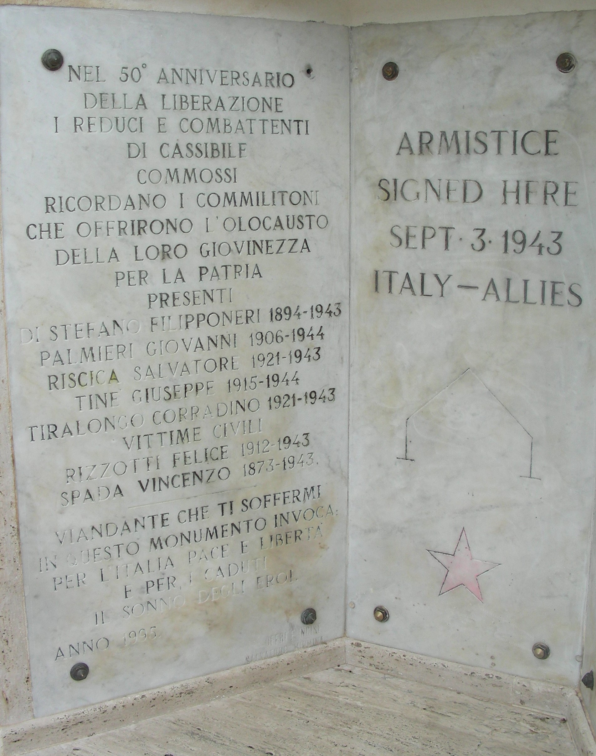 - Foto 1 – Cassibile: altorilievo commemorativo dell’Armistizio