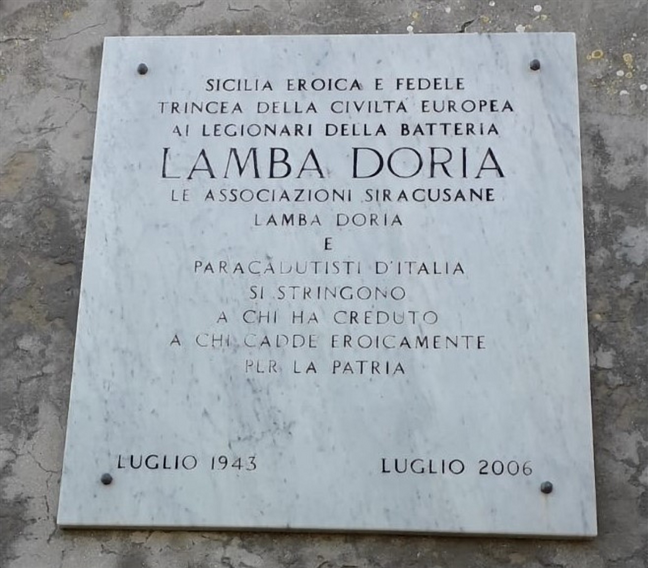 - Foto 6 – Plemmirio (Siracusa), batteria Lamba Doria, lapide commemorativa.