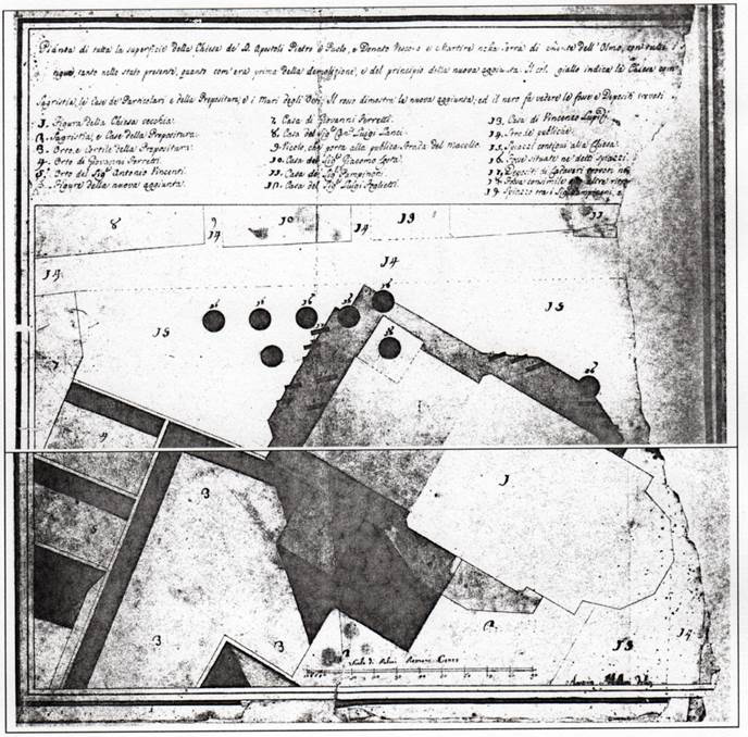 It’s not difficult to insert Antonio Mollari into a European context. A first very important letter, dated May 4th 1807, links him to Antonio Canova whereby, after inviting him, by wish of Phillip Colonna III , he then makes a list of all his works of art; the second is dated February 25th 1809. Various contacts with Giuseppe Valadier can be established from the first letter: in Corridonia (Saints Peter, Paul and Donato Collegiate church; St. Saviour’s Hospital and Church) and in Macerata (Conti Palace ex Ugolini). So much so as to regard Mollari as Valadier’s continuator in the Marche construction sites, where the Maestro’s presence is expressed like a superimposition of Frenchified motives for Palladian solutions: both components being present in the Tomassini Palace in Corridonia, which can be traced back to Mollari. Moreover the pages of two Valdier Notebooks, which he must have known about, can be considered half way between a typological exercise and the model.