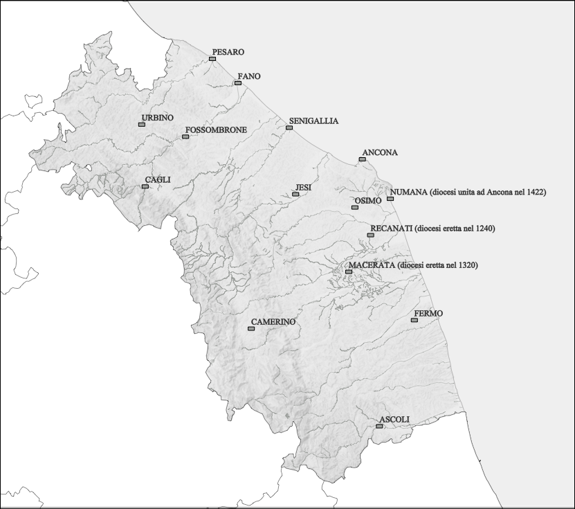 Il testo indaga la configurazione del policentrismo marchigiano nei secoli XIV-XV. La prospettiva d’indagine muove dalle scelte politiche e amministrative adottate dal papato e dai suoi ufficiali provinciali nel governo dello Stato della Chiesa. In particolare, la ricerca si propone di chiarire se nel tardo medioevo il papato pretese di modificare gli assetti del policentrismo, nettamente visibili all’apogeo urbano duecentesco, o se invece preferì assecondarli. Attraverso un esame degli strumenti di governo, che mutarono sensibilmente a seconda delle congiunture storiche, si può ritenere che il papato non intese scalfirle il policentrismo, bensì rimodularlo e incoraggiarlo a proprio vantaggio.